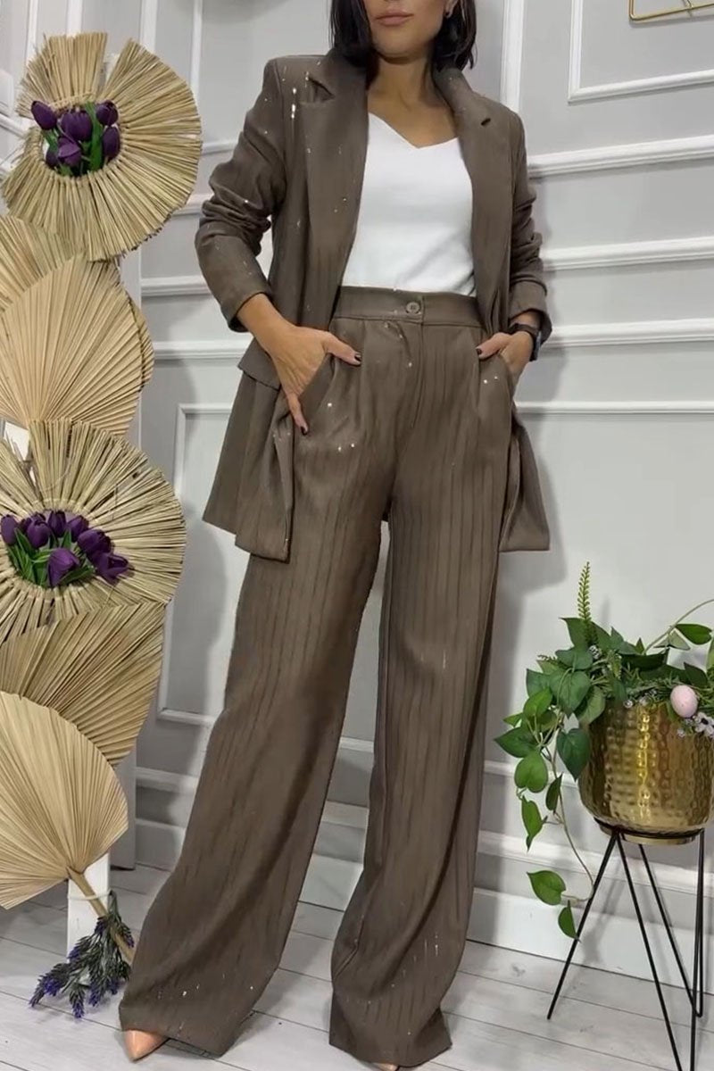Women's High Collar Solid Color Two Piece Suit